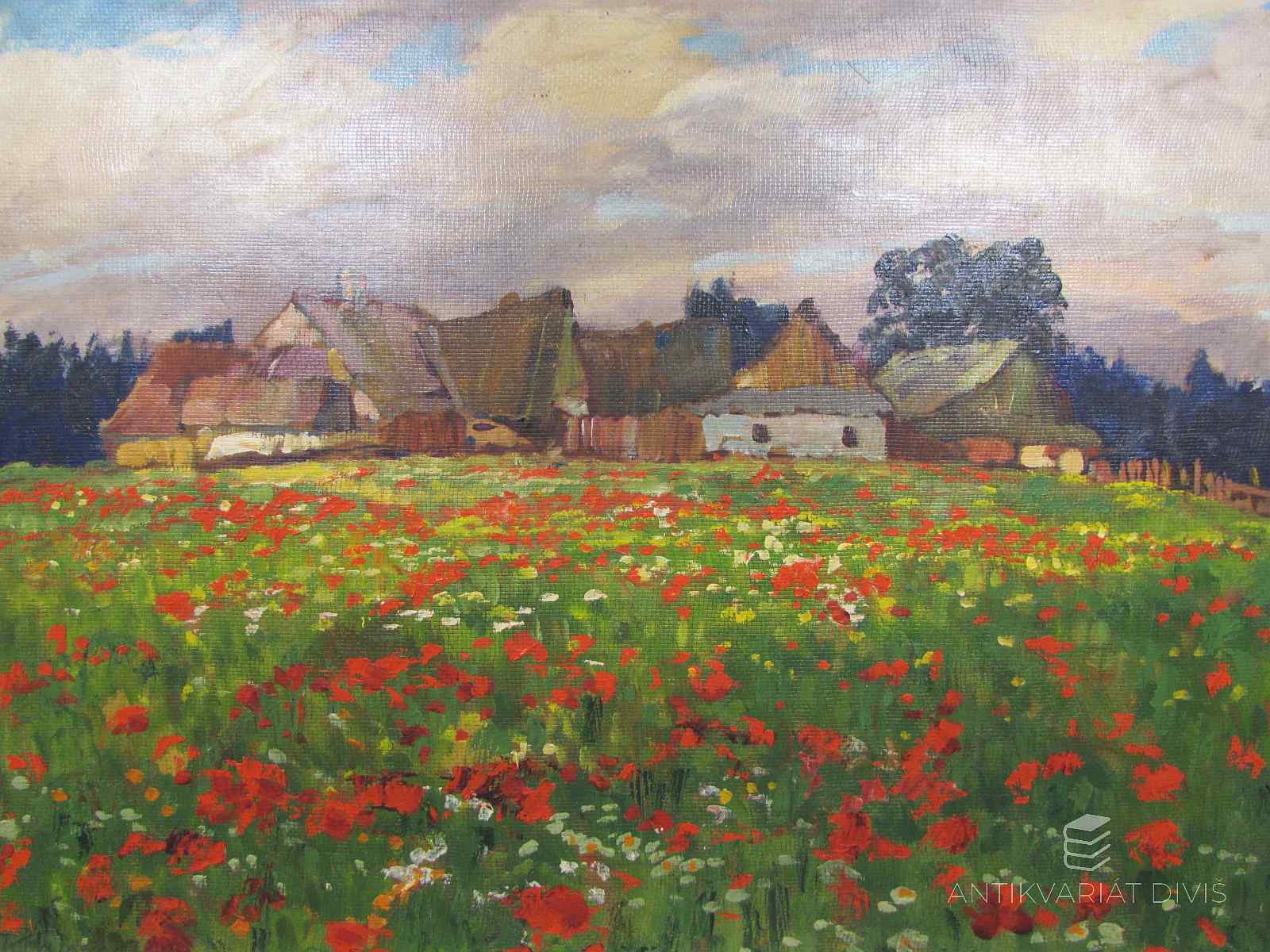 obraz, celkové rozměry 630x495 mm; rozměry malby 475x335 mm; tempera na sololitu