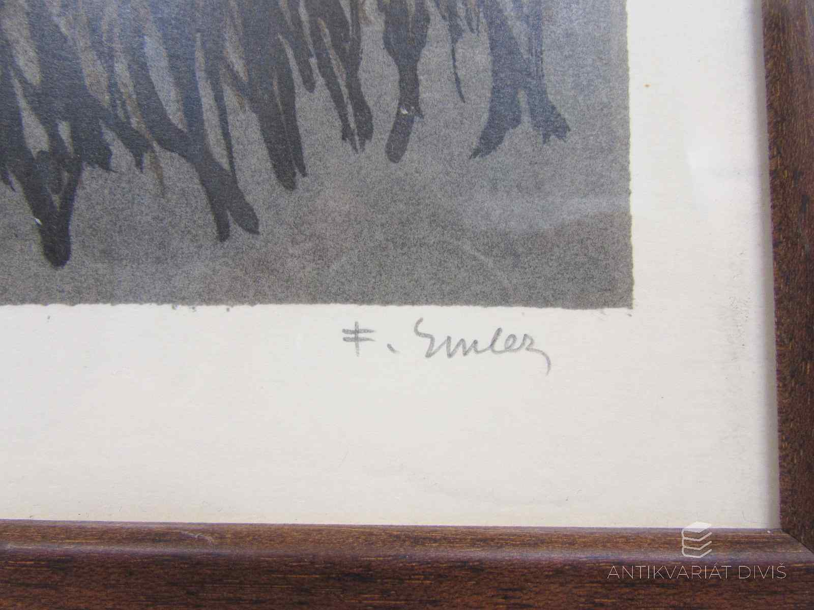 pasparta, celkové rozměry 255x235 mm; rozměry malby 225x210 mm; litografie 37/100, signatura PD
