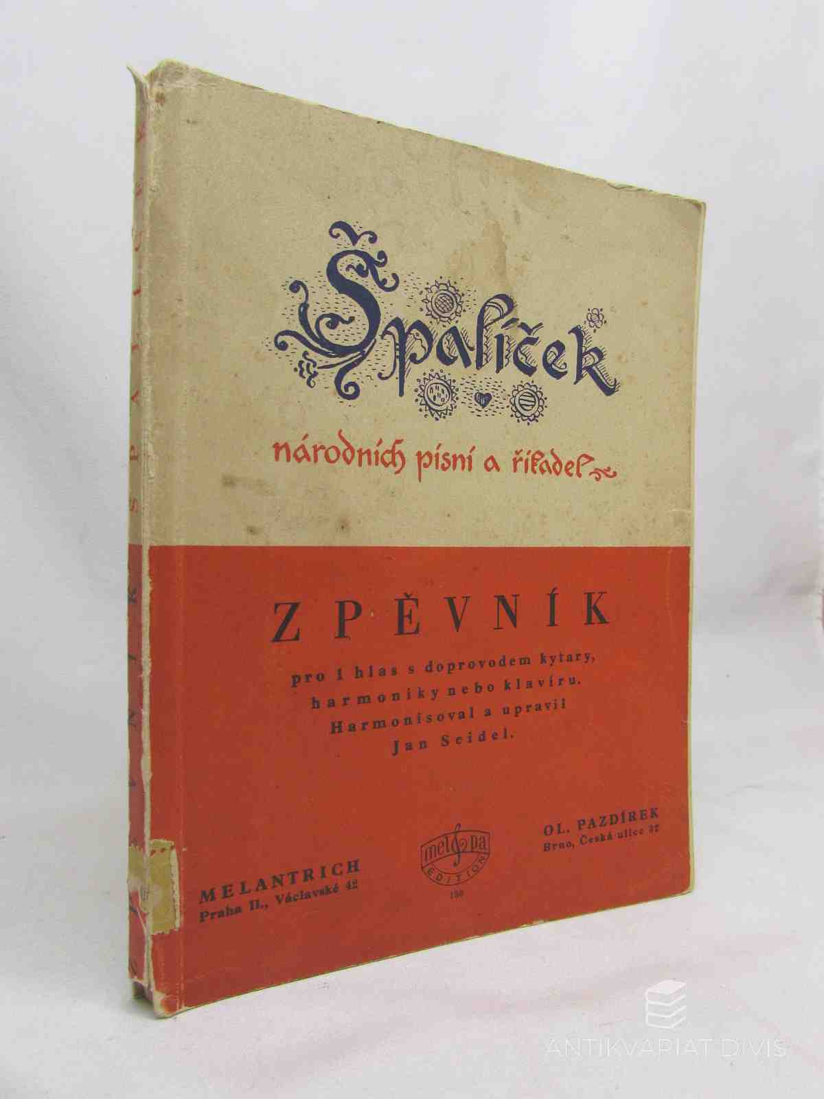 Špalíček národních písní a říkadel - Zpěvník pro 1 hlas s doprovodem kytary, harmoniky nebo klavíru I. díl Seidel, Jan Melantrich, 1939