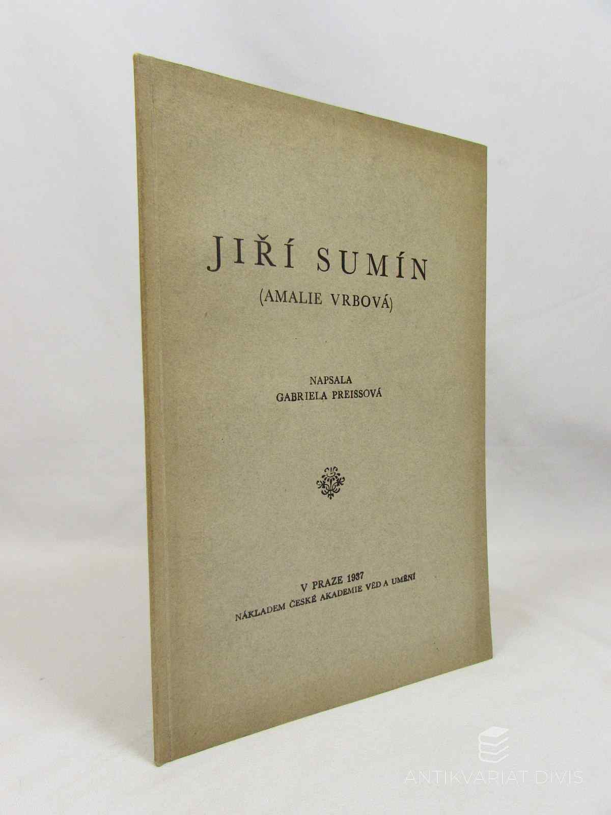 Jiří Sumín (Amalie Vrbová) Preissová, Gabriela ČAVU - Česká akademie věd a umění, 1937, 44 s.