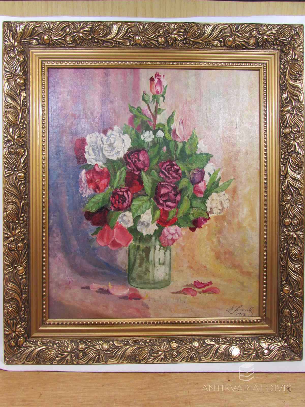 Růže, dřevěný vyřezávaný rám Autor-neurčen, 1956