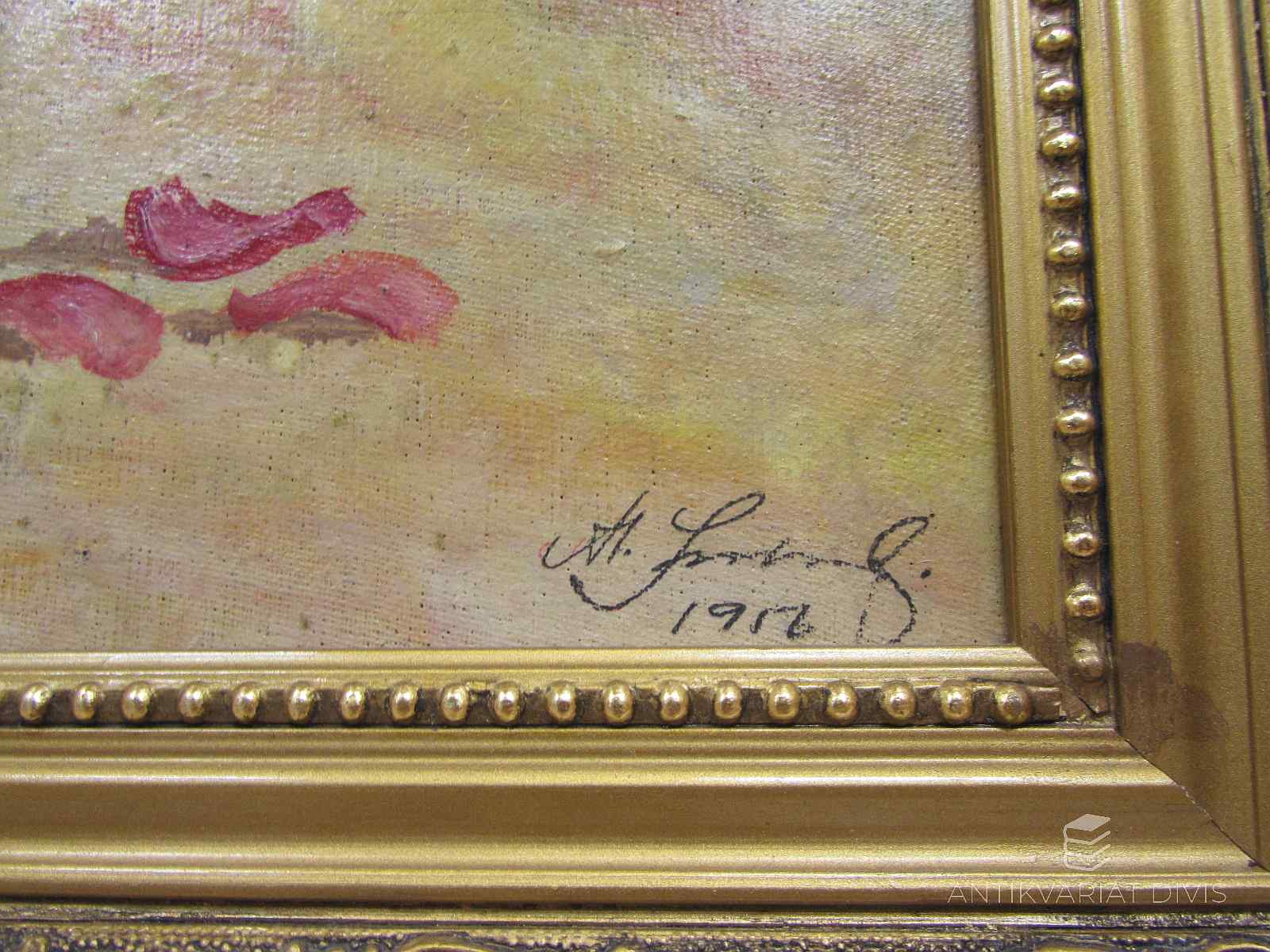 obraz, celkové rozměry 525x465mm; rozměry malby 400x340 mm; olej na plátně, podpis PD neurčen